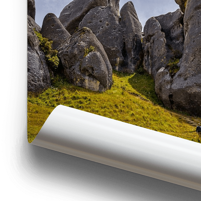 Castle Hill, Kura Tawhiti, Nieuw Zeeland. De kalkstenen rotsformaties liggen verspreid over een groot gebied, aan de Alpine Highway. Een heilige plaats voor de Maori. Het was een voedselverzamelplaats voor de Maori. Dit gebied maakt deel uit van de route naar de westkust. Imposante kalksteen rotsen. De rotsen zijn populair bij klimmers.…
