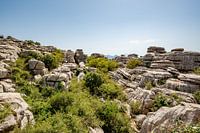 Deze foto toont de indrukwekkende rotsformaties van El Torcal, een natuurgebied dat beroemd is om zijn surrealistische karstlandschap. Tijdens de golden hour werpt de ondergang van de zon een warme gloed over de kalkstenen structuren, waardoor ze nog dramatischer en betoverender lijken. De unieke vormen zijn het resultaat van miljoenen jaren van erosie door water, wind en ijs, wat heeft geleid tot deze bizarre en prachtige sculpturen. De combinatie van de gouden tinten met het helderblauwe van de lucht creëert een visueel spektakel dat je uitnodigt om verder te verkennen. Dit gebied is niet alleen een lust voor het oog, maar ook een plek vol biodiversiteit, waar je mogelijk wilde dieren zoals steenbokken en vale gieren kunt spotten. Deze opname vangt de essentie van El Torcal en laat zien waarom dit gebied zo bijzonder is voor natuurliefhebbers en fotografen.