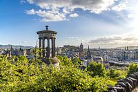 Uitzicht langs het Dugald Stewart Monument naar de Balmoral Tower en Edinburgh Castle. Edinburgh Castle is het herkenningspunt en bepaalt het beeld van de stad met zijn imposante ligging op Castle Rock, de krater van een uitgedoofde vulkaan.