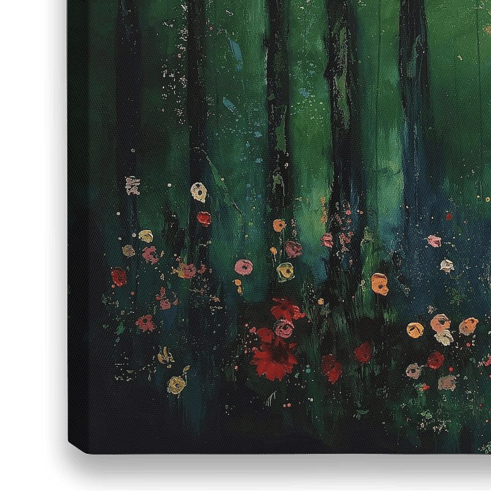 Een tumultueus boslandschap gecreëerd met levendige, ongetemde penseelstreken. De bomen lijken te dansen in een wervelwind van kleur, waarbij de emoties van de natuurlijke wereld worden getoond. De levendige kleurenpaletten, variërend van diepe groentinten tot weelderige geeltinten, weerspiegelen de innerlijke krachten van het bos in…