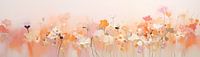 Impressionistische Bloemen | Bloemenzee - Dit brede canvas biedt een serene weergave van wilde bloemen in een impressionistische stijl, met een harmonieuze overgang van warme Peach Fuzz tinten naar zachte crèmes en wit. Het subtiele gebruik van textuur geeft het stuk een tastbare kwaliteit, terwijl de uitgestrekte horizontale compositie…