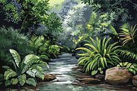 Dompel jezelf onder in de rust van de natuur met deze prachtige foto van een rivier die door een weelderige jungle stroomt. De intense kleuren en het impressionistische detail van Vincent van Gogh brengen de schoonheid van dit landschap tot leven. Perfect voor in de slaapkamer of hal, om je te ontspannen en te inspireren.
