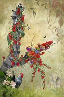 Vlinders en een vink op het bovenste topje van de boomstam maken het speelse werk af.