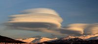 Vreemd gevormde wolken die zijn ontstaan door de hoge luchtdrukverschillen.