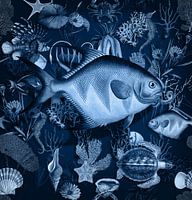Een wonderlijke onderwaterwereld met vissen, krabben, koraal, zeepaardjes, schelpen planten en schildpadden.