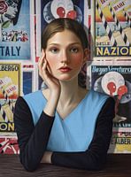 De combinatie van het moderne portret en de verweerde, nostalgische posters creëert een interessante spanning tussen heden en verleden. Het kunstwerk is een visueel aantrekkelijk stuk dat zowel realisme als een vleugje surrealisme combineert.