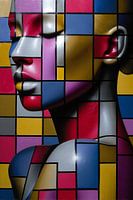 Abstract kleurrijk fantasie portret van een vrouw in Mondriaan stijl
