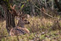 Damhert in de Amsterdamse Waterleidingduinen tussen de bomen de herfst.