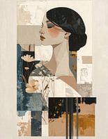 Dit kunstwerk ademt rust uit. De vrouw die je zie heeft haar ogen gesloten. Ze is kalm en omringt met zachte kleuren. Beige, creme, taupe, ijsblauw, gebroken wit en warme grijs tinten. Dit werk is perfect voor scandinavische, bohemian of japandi interieurs.