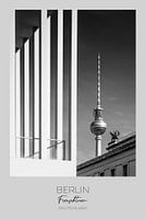 Met zijn 368 meter is de TV-toren van Berlijn het hoogste gebouw van Duitsland en een al van verre zichtbaar oriëntatiepunt aan de Berlijnse skyline. Het is een bekend herkenningspunt van de stad. Hier met de voorgevel van de James Simon Galerij en het Altes Museum. Fantastisch stadsmotief uit een reeks van verdere stadsimpressies.
