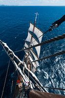 Het is een hele klim om in het topje van de 45 meter hoge mast van de StadAmsterdam te komen. En zeker zeilend is dit een spectaculaire ervaring. Het uitzicht is dan ook fenomenaal. Na wat klim instructie en training mag je samen met de bemanning aan het werk op de ra's. Er is wat durf voor nodig maar je bent uiteraard altijd goed aangelijnd.