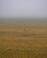 In de Stilte van de Ochtend, een moment dat bijna ongemerkt voorbijgaat. Een uitgestrekt veld, gehuld in zachte mist, waarin één vogel stil aanwezig is — klein in het landschap, maar krachtig in zijn eenvoud.