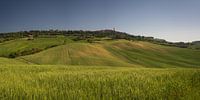 Landschap bij zonsopgang rond Pienza, Val d'Orcia, Orcia vallei, UNESCO werelderfgoed, provincie Siena, Toscane, Italië, Europa