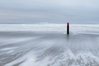 Een paal in de golven ope het strand van Ameland