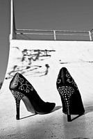 Hoge hakken, pumps, uit de serie "Off the Catwalk" in een sportfaciliteit