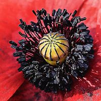 De klaproos is al een mooie bloem van zichzelf, maar het hart van de klaproos is ook een kunstwerk op zich.