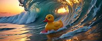Op de rimpelende grens tussen dag en nacht, daar waar de zon het water met goud versiert, dobberde een vrolijke badeend. Te midden van de grootsheid van de oceaan, onverschrokken door de dansende golven, vond het eendje haar weg, licht als een veertje. Dit beeld, dit toonbeeld van veerkracht en lichtheid, vertelt een verhaal dat de…