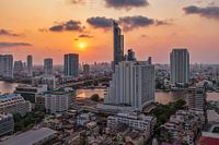 De zon komt met moeite door de waas van Bangkok, Thailand.