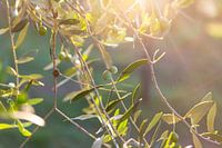 In de olijfgaard bij San Quirico d'Orcia in Toscane (II). Zonsopkomst in een Toscaanse olijfgaard. Vastgelegd door de Utrechtse fotograaf André Blom in het najaar van 2022