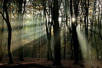 Zonneharpen tussen de bomen.