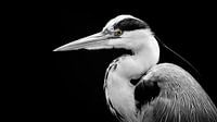 Ik heb wel wat met reigers. En als ik er een zie, wil ik die wel hebben. Deze reiger stond aan de waterkant en moest er niet zoveel van hebben dat ik verderop met een groot zwaar objectief in de weer was. Ik zag hem. Hij zag mij. En hield me in de smiezen. Dat leverde deze foto op. De achtergrond was verder donker en het verenpak zwartwit, dus ik zette de foto in zwartwit en haalde alleen de gele ogen terug.