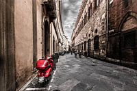 Rode scooter in de straten van het historische centrum van Siena, Toscane, Italië