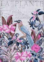 nostalgische kunstcollage met tropische vogel en exotische bloemen in pastelkleuren