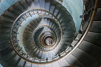 Uitzicht van boven naar beneden in de trap van de vuurtoren van Ploumanac'h in de Bretagne in Frankrijk