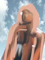 Abstract (digitaal) portret in combinatie met een gefotografeerde wolkenlucht als achtergrond.