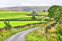 Typische Szene aus den Yorkshire Dales zur Zeit der Heideblüte. Aufgenommen nahe Hebden im Wharfedale. Großbritannien, im Sommer 2014.
