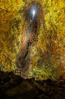 IJsland de enige plek in de wereld waar je op de bodem van een vulkaan kan staan. 120 naar beneden in de magmakamer, En dan omhoog kijkend naar het gat bovenin. De kleuren van moeder aarde te zien die veroorzaakt zijn door de grote warmte die hier heerste zo'n 4000jaar geleden.