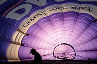 In een luchtballon die wordt opgeblazen