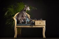De hond op deze foto is een windhond. Haar naam is Zoë en ze is een Whippet. Ze houdt erg van model staan en met veel geduld en oefening maken we samen de mooiste foto's. Zoë is een zeer vriendelijke en lieve hond. Ze houdt van mensen en knuffelt graag de hele dag! Naast het sporten zoals frisbee en rennen staat Zoë ook heel graag model voor mooie en bijzondere foto's! Deze foto is uit de serie Fine Art.