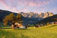 Vroeg in de ochtend in het Gosau-dal als de zon net over de berg komt, met uitzicht op de Gosaukamm.