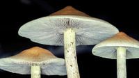 Dit zijn drie gewone zwavelkoppen die naast elkaar staan. Ik heb deze bewust van onder gefotografeerd omdat ik de onderkant interessanter vind. het zijn namelijk plaatjeszwammen, te herkennen aan de lamellen die vanuit de stam naar de rand van de hoed open. Tussen de lamellen vormen de sporen, die er dan tussenuit vallen.