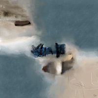 Abstract kunstwerk met zachte kleurovergangen. Beigeblauwe pasteltinten doen denken aan een merenlandschap gezien vanaf grote hoogte.