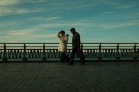 Deze foto ontstond tijdens een wandeling langs de kust van San Sebastián in maart 2025. Twee mensen lopen naast elkaar over de promenade, ogenschijnlijk zonder doel, maar wel in hetzelfde ritme. Dat kleine detail — hoe hun passen bijna samenvallen — maakte dat ik even bleef kijken.