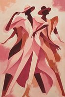 Dit betoverend kunstwerk viert vrouwelijke elegantie door drie gefluid bewegende silhouetten die zich in een dans van zacht roze en warme bruintinten weven. Met verfijnde gelaagdheid en organische vormen ontstaat een tijdloze compositie die gratie, samenwerking en innerlijke kracht uitstraalt. De pastelpalette en stromende lijnen…