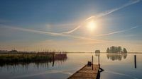 Zonsopkomst boven het Zwarte Brekken, bij Sneek, Friesland. Na een koude nacht hing er mist boven het water. De zon werd snel sterker en probeerde door de mist heen te branden. Een mooi begin van een mooie dag! Als het niet zo koud was zou je zo de steiger af willen springen.