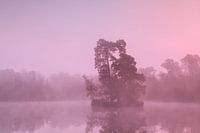 Fantastic misty sunrise over lake in the forest. Oisterwijkse bossen en vennen, Netherlands