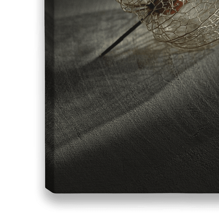 Bij het maken van de foto heb ik gekozen voor een matige scherptediepte. De scherpte ligt op de nervenstructuur voor de oranje bes. Door deze scherptediepte neemt de scherpte geleidelijk af naarmate je verder naar achter kijkt. Dit geeft een gevoel van diepte in het werk. Ook geeft dit ook een dromerigere sfeer aan de foto, doordat niet alles even scherp is. Als je inzoomt op het werk kun je dit zien! Lampionnetjes zijn een van mijn favoriete onderwerpen om te fotograferen! Als je naar mijn shop gaat, vind je daar een album met allerlei verschillende foto's van lampionnetjes.