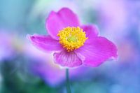Een Japanse Anemoon tegen een bont gekleurde bokeh achtergrond.