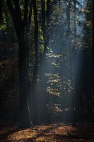 Ineens kwam er een zonnestraal tussen de bomen door die het kleine boompje precies in de schijnwerpers plaatste.