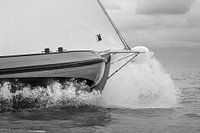 In volle vaart op de boei af.