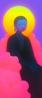 Droomachtige afbeelding van een zielvolle Boeddha in diepe, meditatieve contemplatie. Alles is in orde. De afbeelding is geschilderd in prachtige, warme kleuren waardoor je je meteen op je gemak voelt.