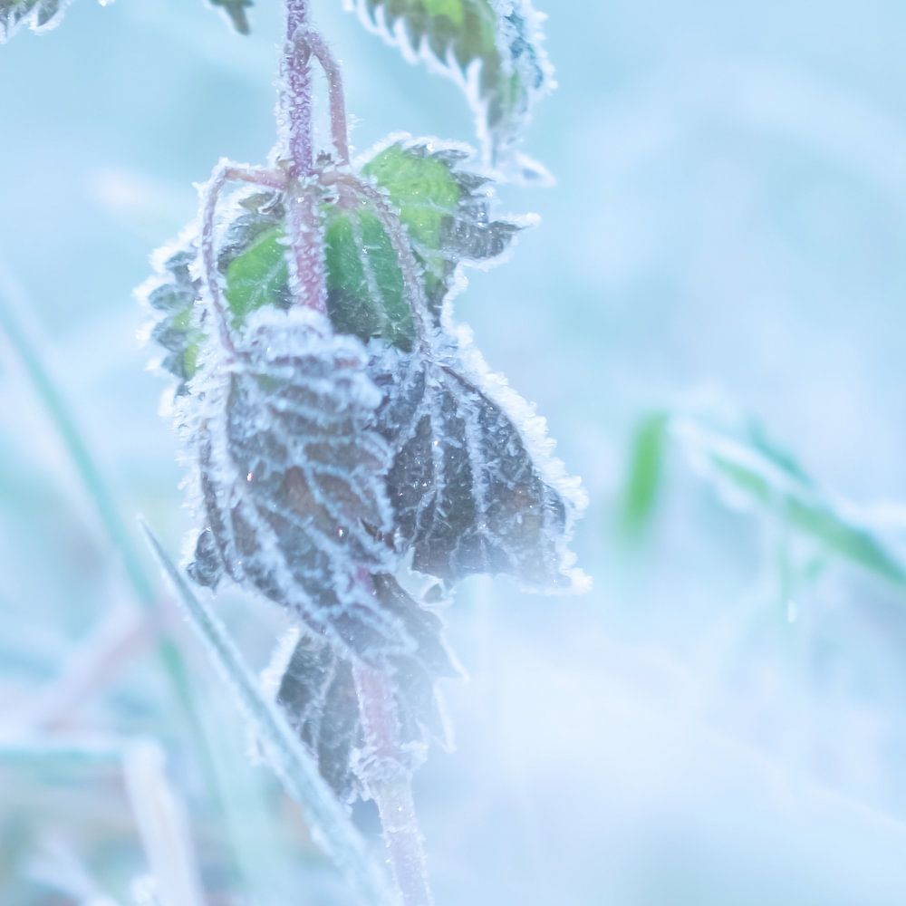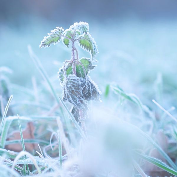 Dit winterse tafereel zorgt voor wat rijp op de bladeren van dit plantje.