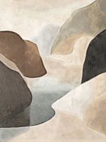 Het werk toont een landschap dat nauwelijks landschap wil zijn. Ronde vormen duwen zich tegen elkaar aan, als bergflanken in mist. Tinten van steen, aarde en water vervloeien zonder haast.