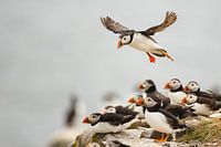 Vliegende pappegaaiduiker op de Farne-Islands.