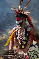 Indiaan in mooie kleurige originele kledij met een indrukwekkende achtergrond .