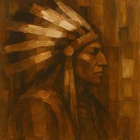 Dit abstracte olieverfwerk vangt de ziel van een indiaan in warme bruintinten, die kracht en sereniteit uitstralen. De expressieve penseelstreken brengen een gevoel van diepgang en verbondenheid met de natuur. Elk detail ademt spiritualiteit en tijdloze wijsheid. Het kunstwerk nodigt de toeschouwer uit tot introspectie en bewondering…